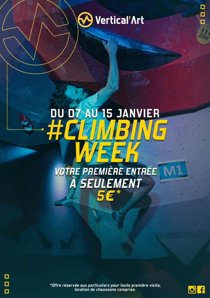 La Climbing Week fait son retour à Vertical’Art*, et elle est encore plus belle que sa dernière édition ! Du samedi 7 au dimanche 15 janvier, votre réseau de salle de bloc présent à travers toute la France, notamment en région parisienne, vous invite à découvrir l’escalade de bloc à prix cassé pour démarrer l’année sur les bons rails et respecter vos bonnes résolutions du Nouvel An !