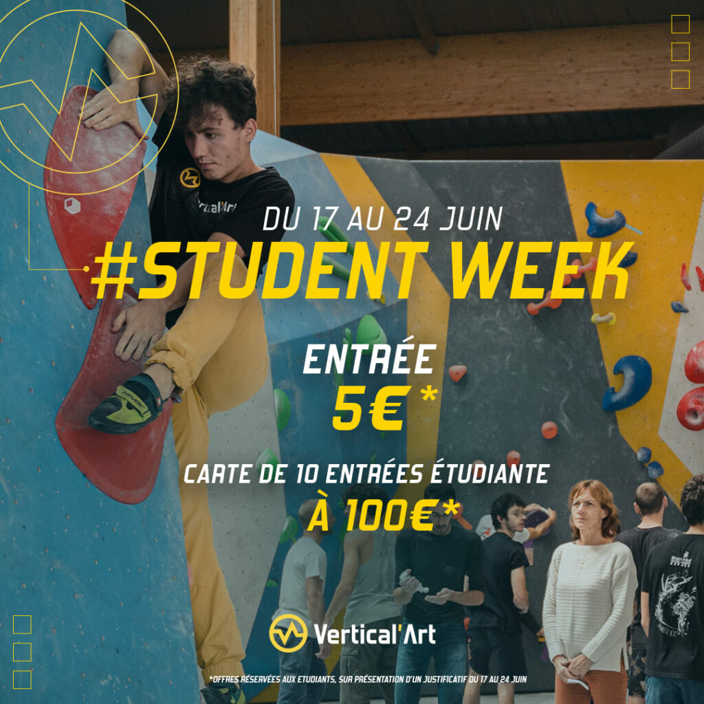 La fin de l’année scolaire se fait sentir, tout comme les soirées et températures d’été, alors la Student week Vertical’Art fait son retour ! Pour fêter le début de l’été et vous inviter à découvrir l’escalade de bloc à bas coût, seul, entre amis ou en famille, les salles de bloc Vertical’Art organisent une semaine dédiée à tous les étudiants, sans exception, du samedi 17 au samedi 24 juin inclus.