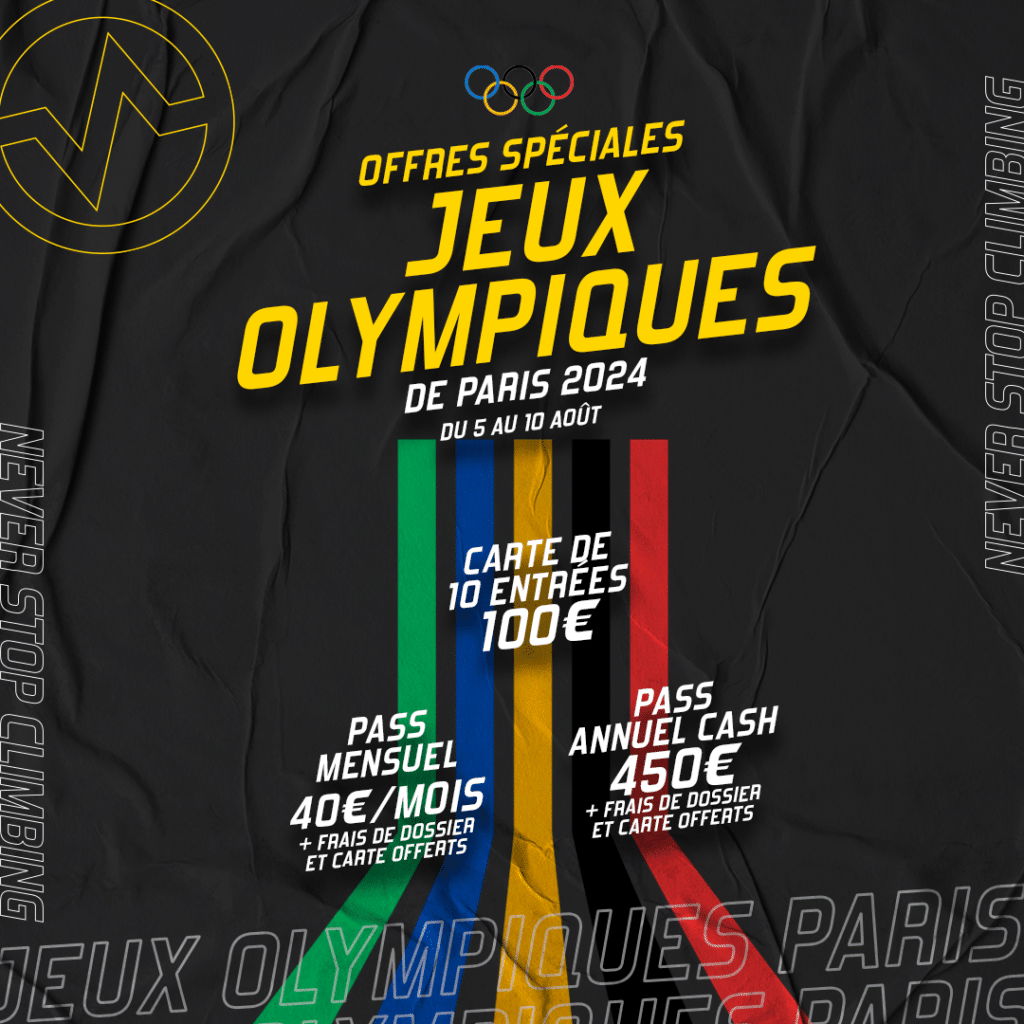 Tout comme nos salles de bloc sont accessibles à la journée pour chaque entrée, l’offre sera accessible toute la semaine d’escalade aux Jeux Olympiques. Mais au-delà, ce ne sera plus le cas, alors ne tardez pas et foncez sur notre SHOP en ligne ou à l’accueil de nos salles du lundi 5 au vendredi 10 août, pour bénéficier de ces offres ouvertes à tous les grimpeurs !